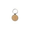 Chaveiro de metal redondo, frente com detalhe em bambu e verso liso.
