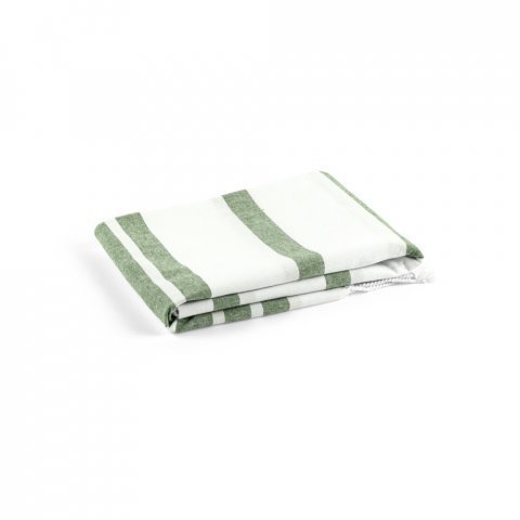 Toalha de praia em algodão 70% reciclado e poliéster 30% reciclado (180 g/m²), com um design minimalista e elegante para os seus dias de praia.